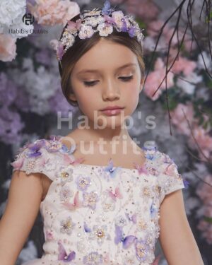 A stunning collar-style design with exquisite handwork on the daman, crafted using 3D material for an elegant look. The collar also features intricate 3D work, while the sleeves are delicately embellished. The back is adorned with a beautifully crafted bow, adding a graceful touch.