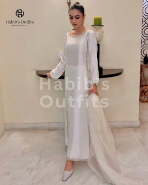 A stylish back design adorned with intricate handwork and modern shoulder-cut details for a chic finish.